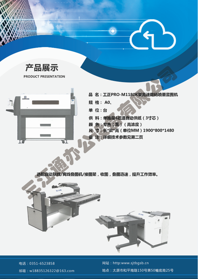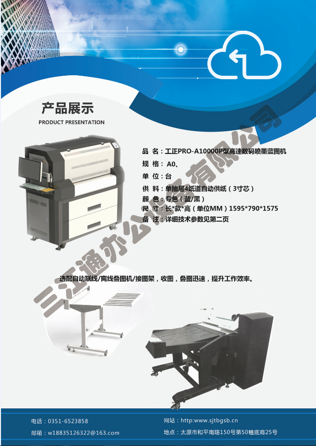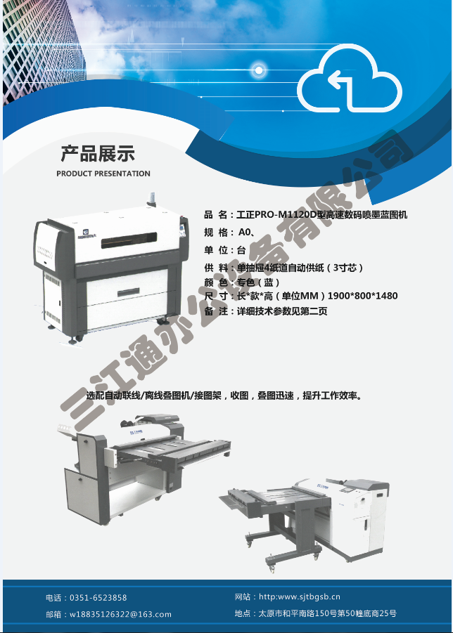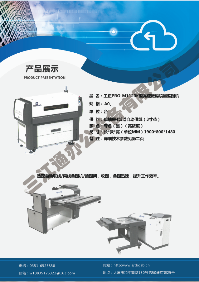 太原市三江通辦公設備有限公司是一家專業(yè)從事曬圖機、數碼復印機、多功能打印、復印、掃描、縮放一體機、模擬工程復印機、繪圖儀、大型掃描儀、電子歸檔設備、手動、自動成形圖紙檔案密集柜、圖前圖后設備以及所有制圖設備耗材供應、維修一條龍的實體企業(yè)。多年來,已與日本、北京、天津、上海、杭州等諸多家廠方多方合作,成為山西>>更多